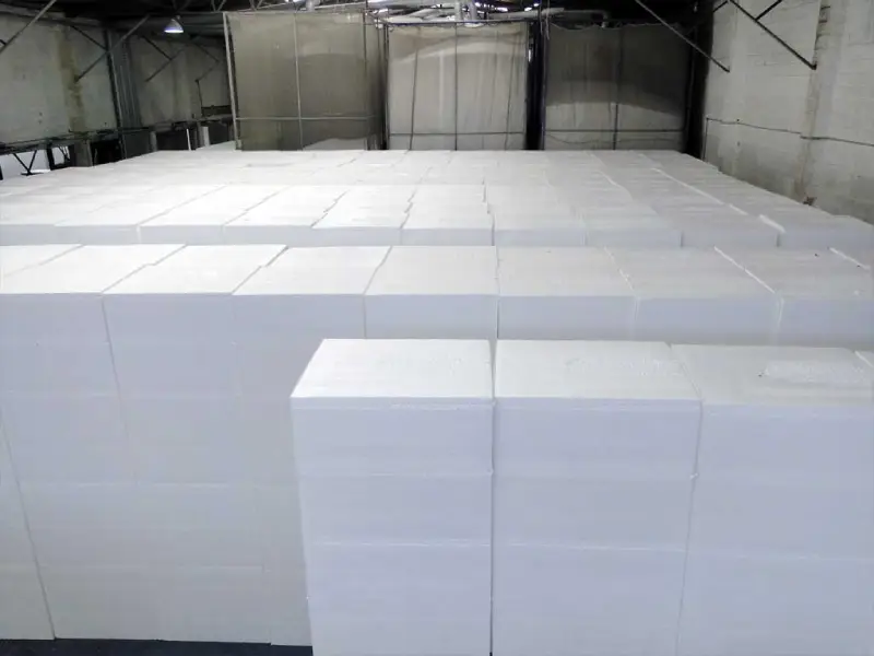 EPS (isopor) produzido com material puro e de alta densidade, entre 20 e 30 kg/m³.
