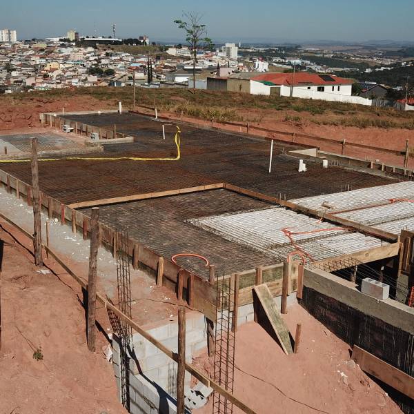 Após a preparação do terreno e a locação da obra, é realizada a fundação (recomendável o tipo radier). As tubulações de hidráulica, elétrica e outras devem ser posicionadas antes da concretagem.